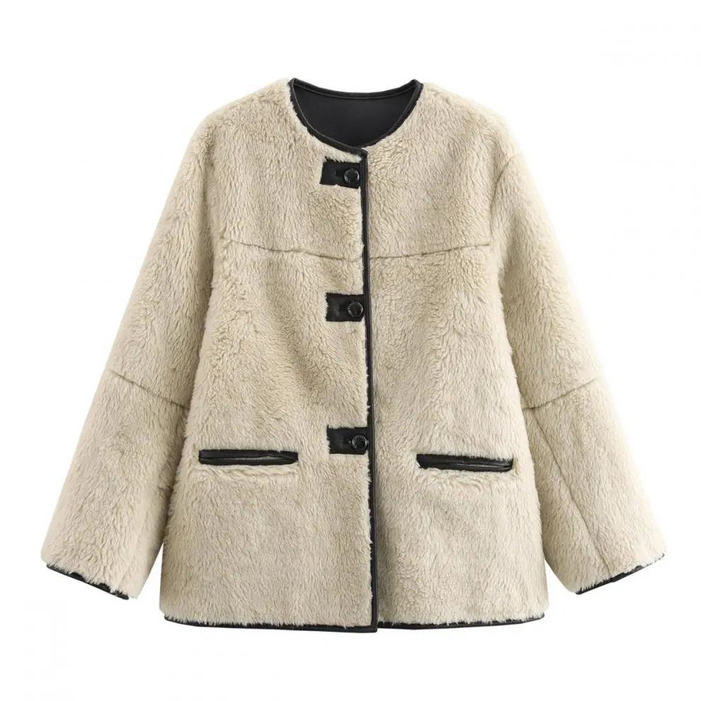 Chaleur et style se rencontrent dans ce manteau en peluche de fourrure tricolore pour femme. Doux et confortable, il est parfait pour rester bien au chaud tout en affirmant votre look.